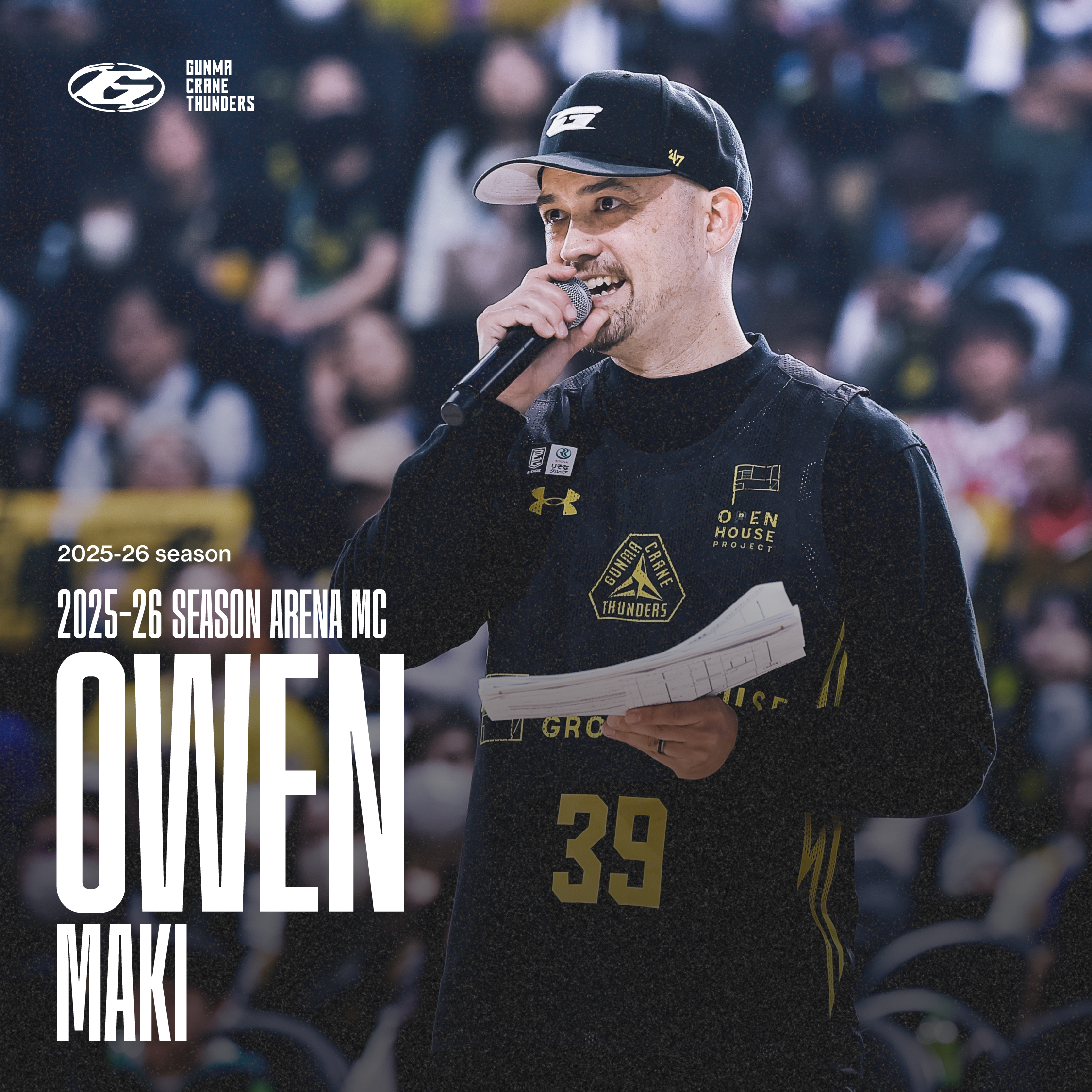 2025-26シーズンのホームゲームのアリーナMCとしてOWEN真樹 氏に出演いただくことが決定しましたのでお知らせいたします。