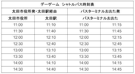 ①太田市役所発着/太田駅南口経由⇔オープンハウスアリーナ太田 11:00~14:40