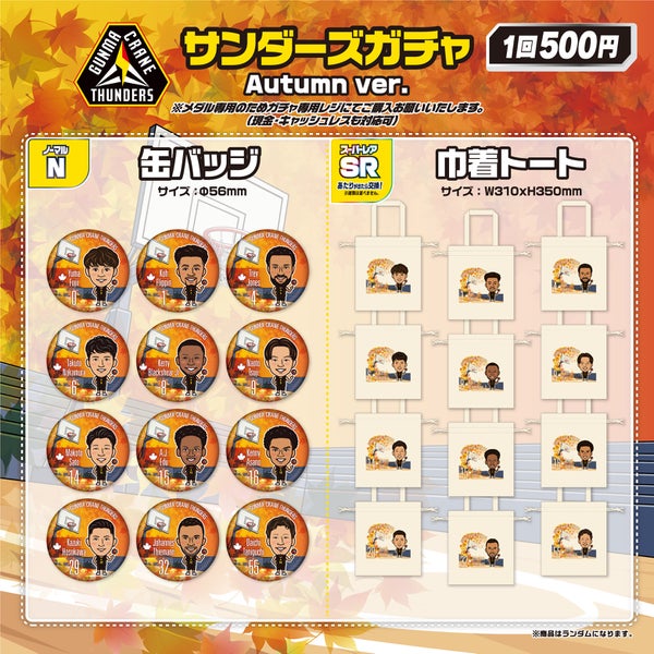 いつも群馬クレインサンダーズへ温かいご声援をいただき誠にありがとうございます。 11月1日(土)2日(日) 横浜ビー・コルセアーズ戦 注目のグッズ情報をお知らせします。 【新商品】 【サンダーズガチャ】 サンダーズガチャは10:00~販売開始します。 ▼オンラインショップはこちら オンラインショップ オンラインショップは¥10,000以上のご購入で、送料無料&ステッカープレゼント! ※オンラインショップでは取り扱いのない商品もございます。