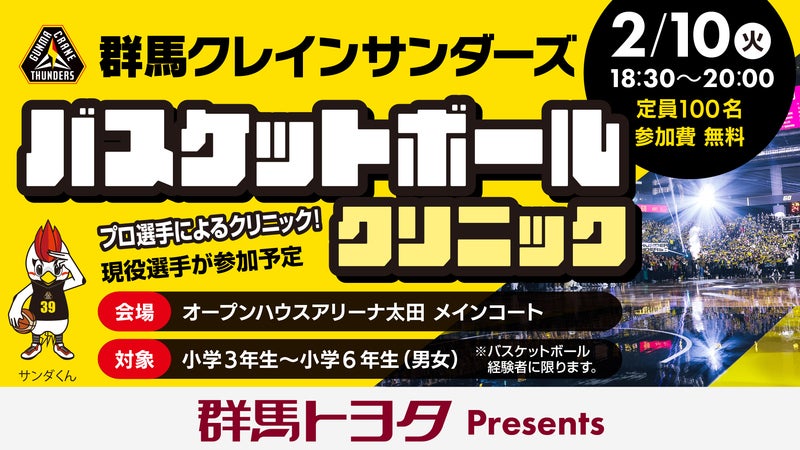 [2026.01.10] 【募集】群馬トヨタ自動車株式会社 presents バスケットボールクリニック開催のお知らせ