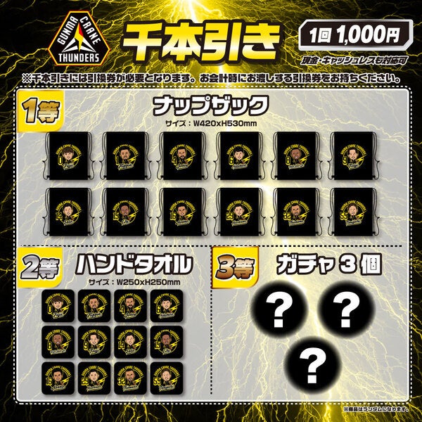 ※試合に勝利した場合、1階サンダーズガチャブース限定で販売します。